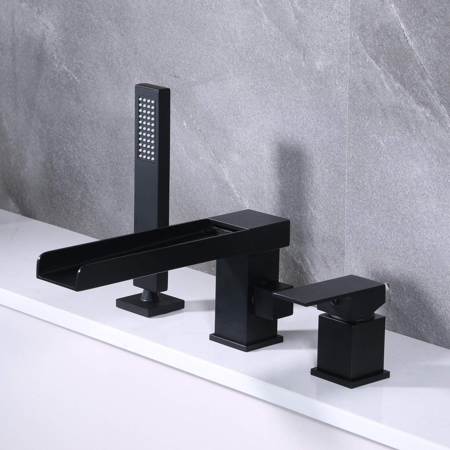 This striking tub faucet features a traditional style with roman design detailing that will liven up the decor of your bathroom. Why buy from crea bathtub faucet? 3 holes with pull out sprayer, convenient for family using 5. 3 holes hole faucet sink faucet black lead free 3 holes or 1 hole single handle pull down sprayer black kitchen sink faucet with deck plate. Made of the solid brass, ensures maximum durability 4.