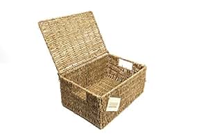 Seagrass storage basket box hamper with lid rectangular small medium large.